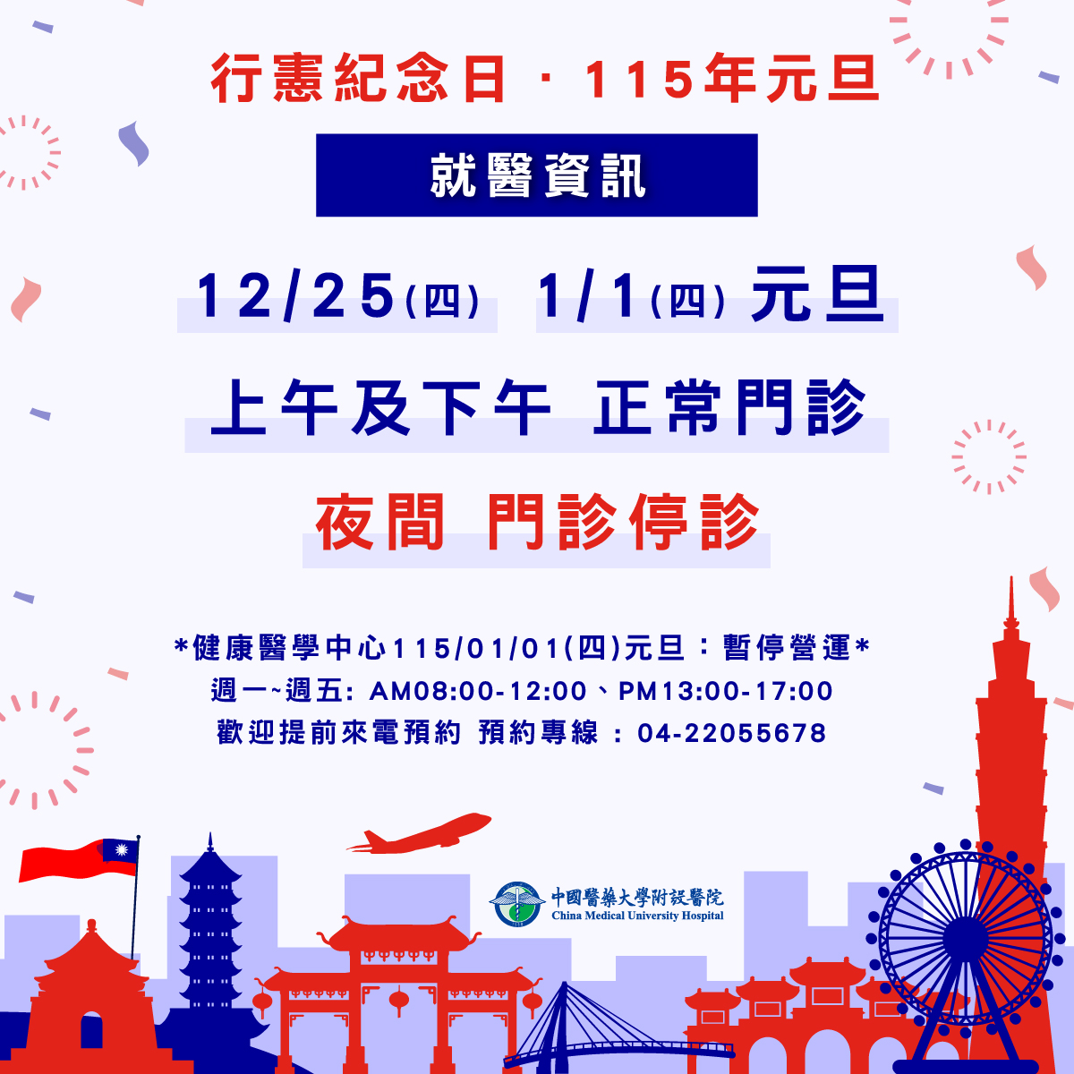 為服務民眾就醫需求,本院於下列日期門診服務說明如下: