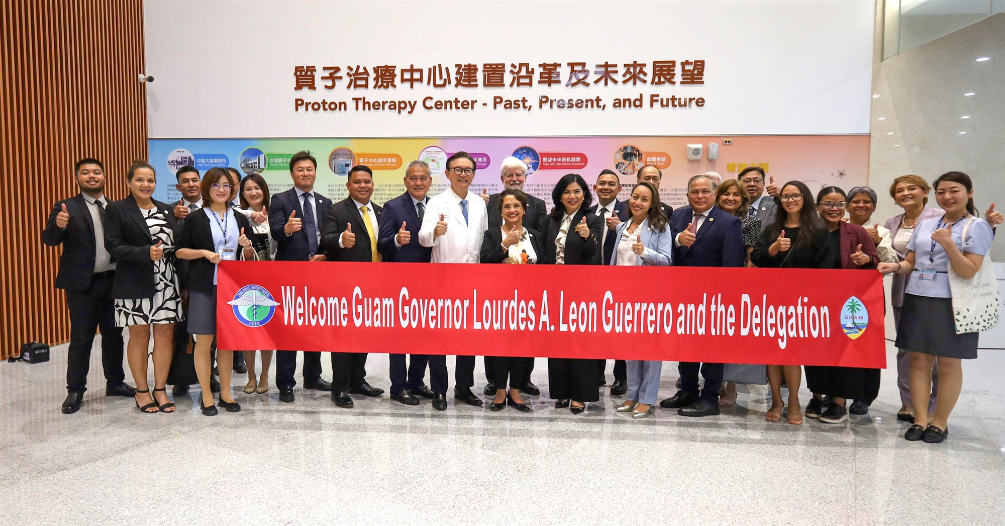 關島總督古蕾露Lourdes A. Leon Guerrero於2025年5月率團參訪中醫大附醫質子治療中心,稱讚在中醫大附醫尖端醫療設備與精湛手術治療下,守護許多關島病人的健康。