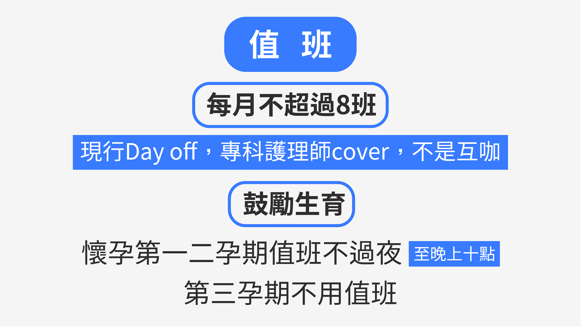 📌 第1-2孕期值班不過夜(10點下班)
