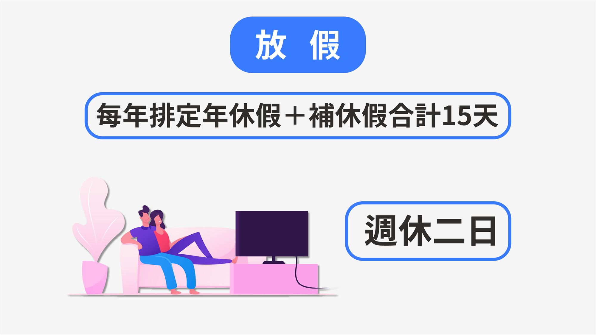 🛋️ 年假+補休共15天,週休二日真實存在
