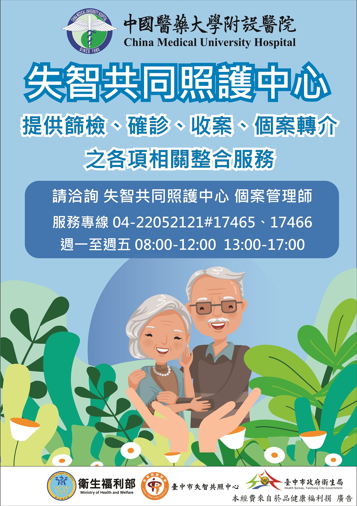 失智共照中心的設立,旨在協助疑似失智的長輩及其家屬,提供早期診斷、預防觀念宣導,以及後續照護資源的整合與轉介。中心致力於營造一個安全、尊重且支持性的環境,讓失智者能夠在尊嚴中持續生活或參與社會活動,同時協助家庭成員減輕照顧壓力。根據個別需求,中心也會提供不同程度的專業協助與關懷陪伴,讓每位患者與家庭都能獲得合適的支持與資源。