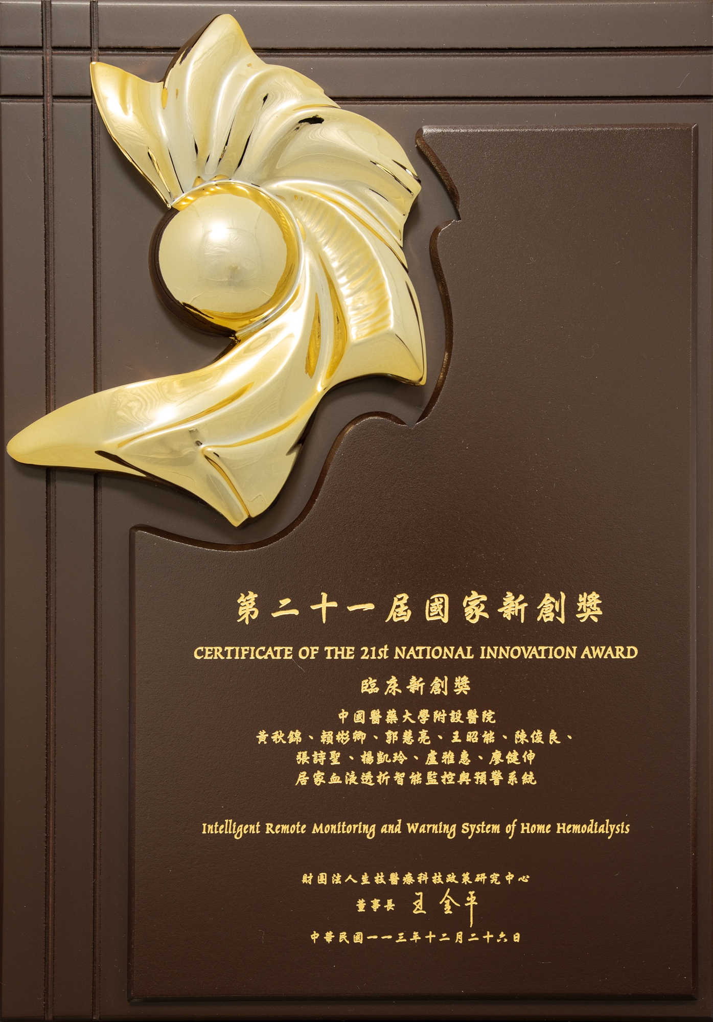 榮獲 第21屆「國家新創獎」居家血液透析智能監控與預警系統