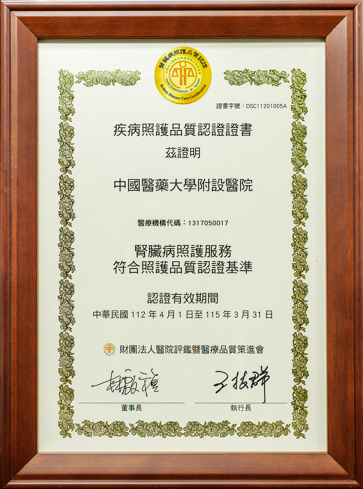 榮獲「提升腎臟病健康促進機構照護品質計畫」佳作