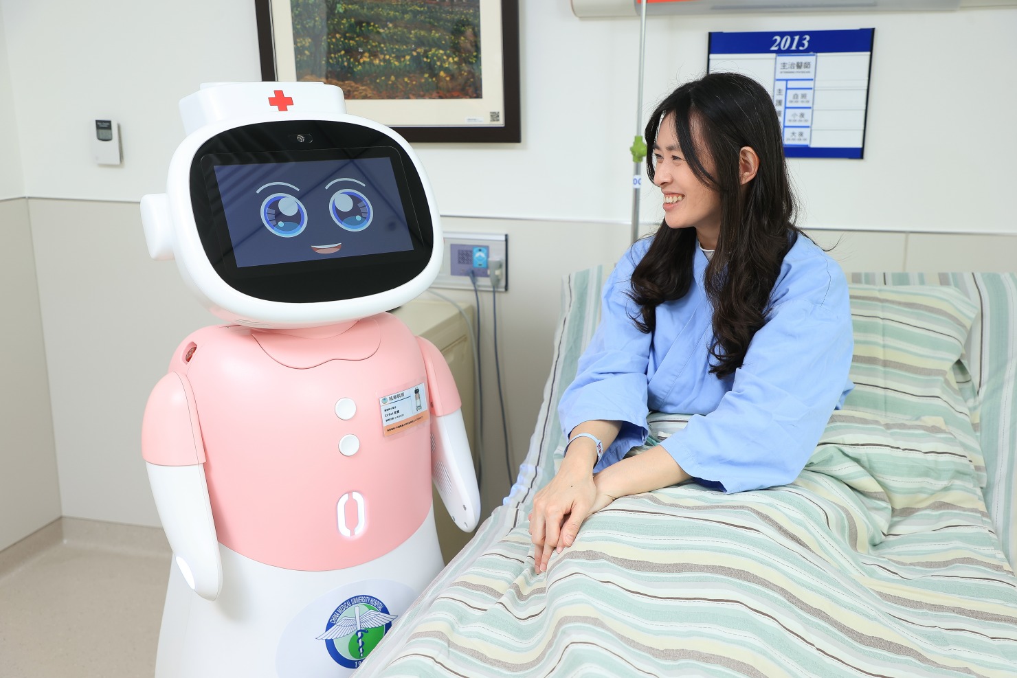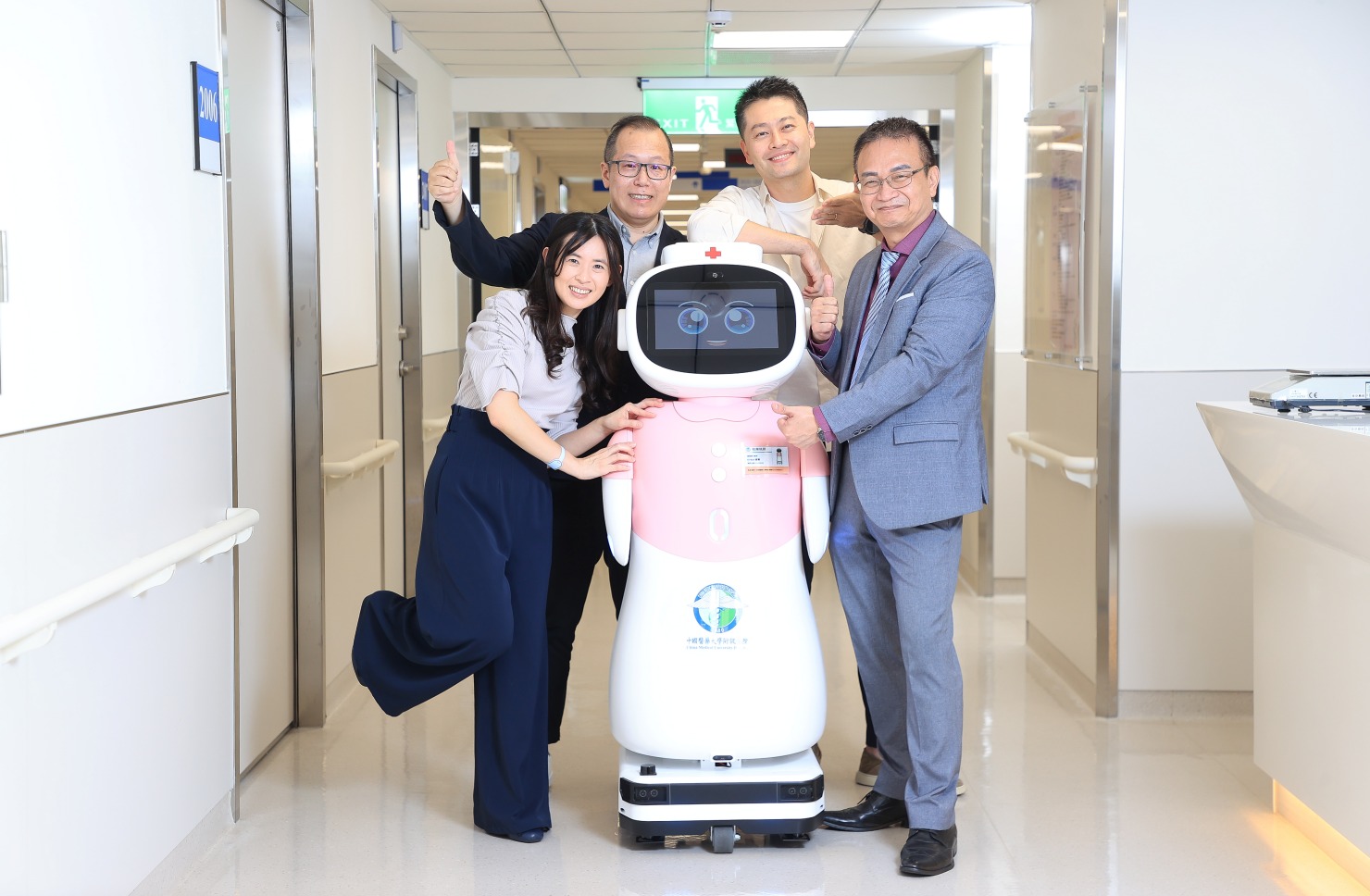 傍晚,中國醫藥大學附設醫院醫療大樓20樓燈火通明,護理師們來回穿梭,還有一個大約150公分高的身影,在走廊上安靜移動,它,不是護理師,而是即將加入醫療第一線的最新護理機器人「愛寶」(Eirbot)。