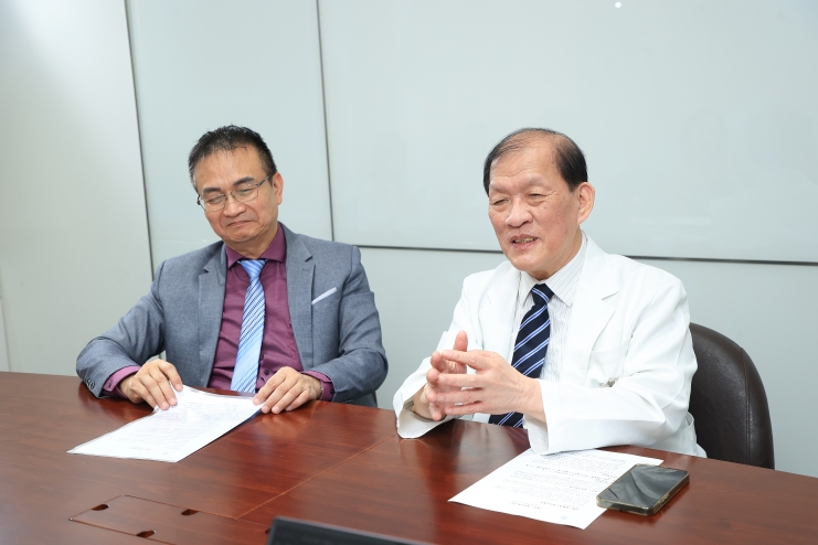 中醫大醫院院長周德陽(左)、長聯科技董事長李友錚(右)是護理機器人愛寶的主力推手。