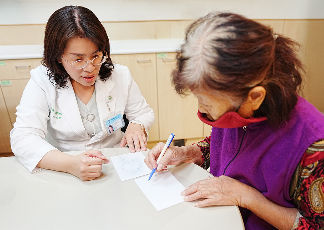 盧韻如醫師(左)為陳女士進行動作與認知功能測試,評估記憶、專注及執行能力,確認符合阿茲海默症新藥治療條件。