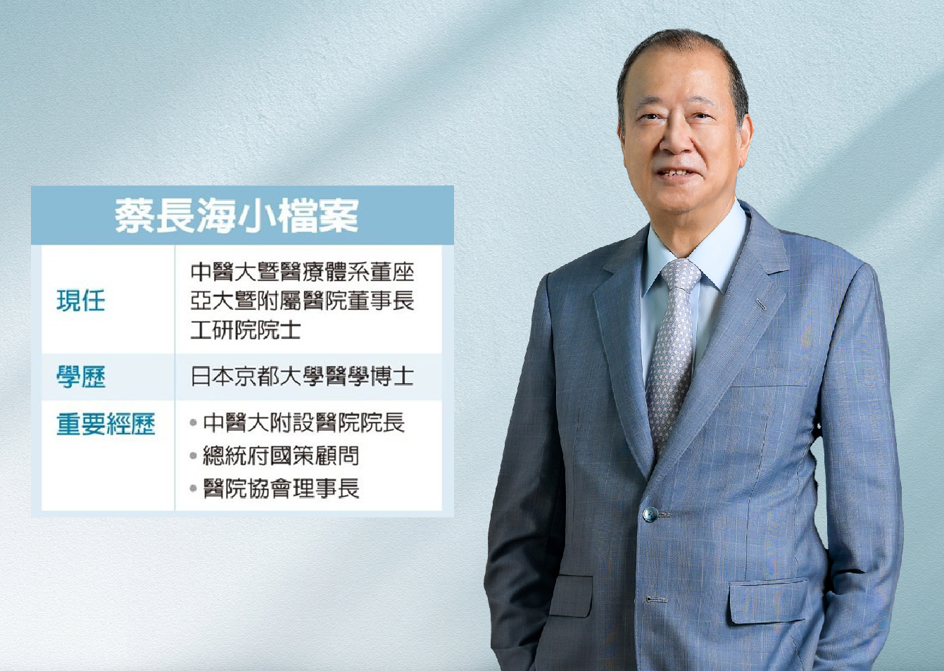 中國醫藥大學暨醫療體系董事長蔡長海外表精神抖擻,氣色紅潤,比實際年齡年輕很多,這要歸功於蔡長海的養生之道與生活哲學。