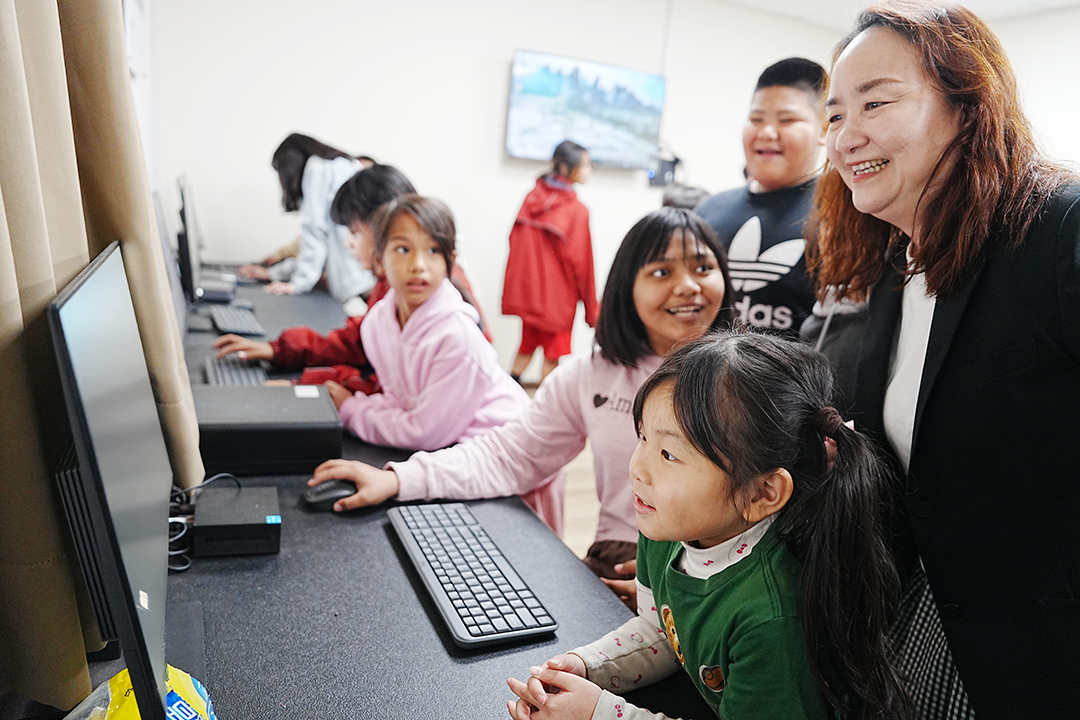 幕後直擊/團隊耐心陪伴孩子操作電腦、一步步教學,孩子專注又開心的笑容,是學習現場最真實的回饋。
